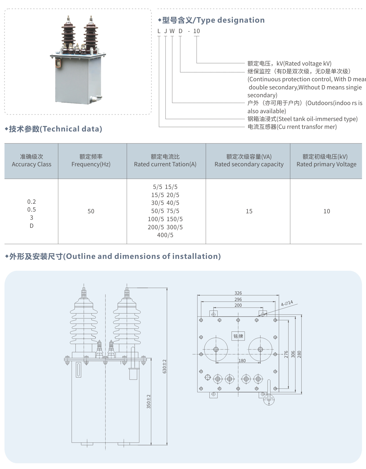 LJWD-10型户外电流互感器